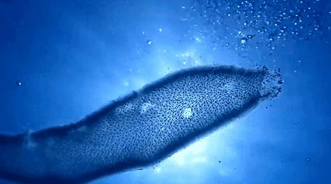 但它们的进食和蓝鲸很像,更像是一种过滤,火体虫运用体内一种叫做腮笼的器官吸收海水,留下水中有营养的部分,再把水排出。