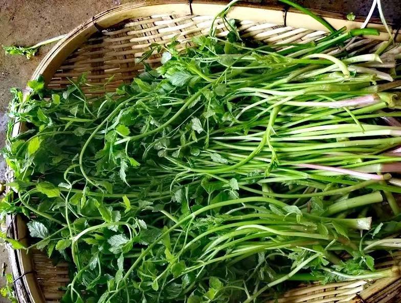 水芹菜,一般生长在湖边、河边、水沟边。富含多种维生素和无机盐类,味道鲜美、口感脆嫩、无比清甜。可清炒也可凉拌,经常食用可以清洁血液,降低血压和血脂。