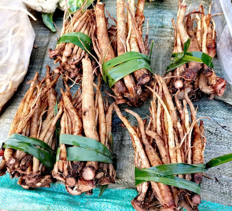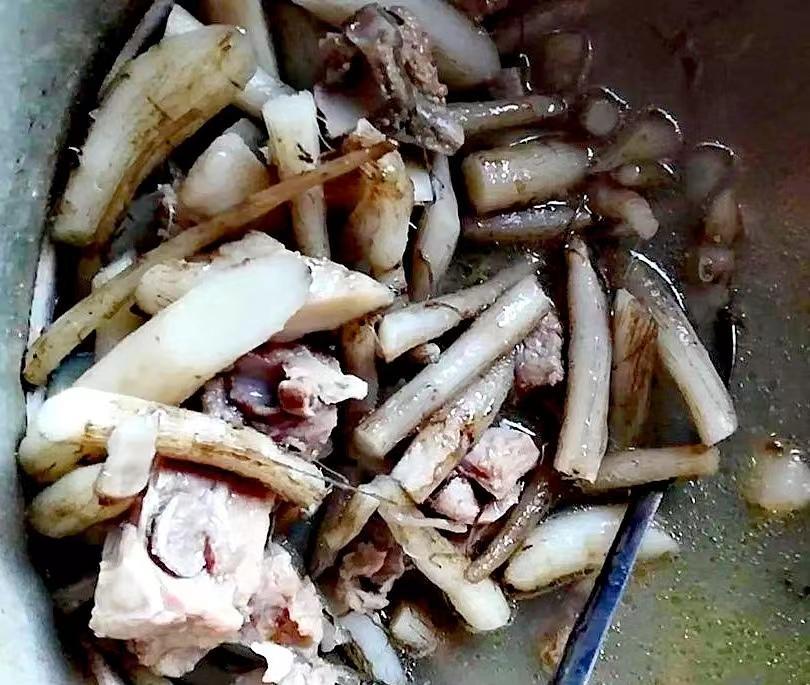 鸡刺根,也叫马刺根、马刺蓟。味甘、性凉,能活血化瘀也可以散瘀消肿,可入药也可作为菜肴。鸡刺根是煲汤的上好食材,当地人喜欢用鸡刺根来堡土鸡汤,味道香气四溢。除了煲土鸡汤外,还可以炖排骨、腊肉、猪蹄、瘦肉等,和各种肉类很搭,吃完也不用担心会上火。