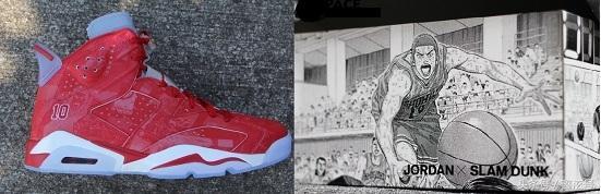 樱木花道的第一双球鞋出现在第20集中,樱木在晴子的陪伴下以30日元购得一双白红配色的Air Jordan 6。要知道这双篮球鞋当时价值人民币1000多块,对比30日元,还不如明抢算了。当然,在2014年井上雄彦(灌篮高手作者)与Air Jordan合作推出联名鞋款: Jordan x Slam Dunk(灌篮高手)。正是凭借主人公樱木花道的号召力Air Jordan圈粉无数,Air Jordan 6着实又火了一把。Nike公司也非常识趣的将AJ6后跟的23字样摘掉,换上了樱木的球衣号码10,并将樱木花道的形象印在鞋面上,鞋盒更赞,完全摒弃传统单一的盒体配色,而换上漫画插图,收藏价值可谓非凡!