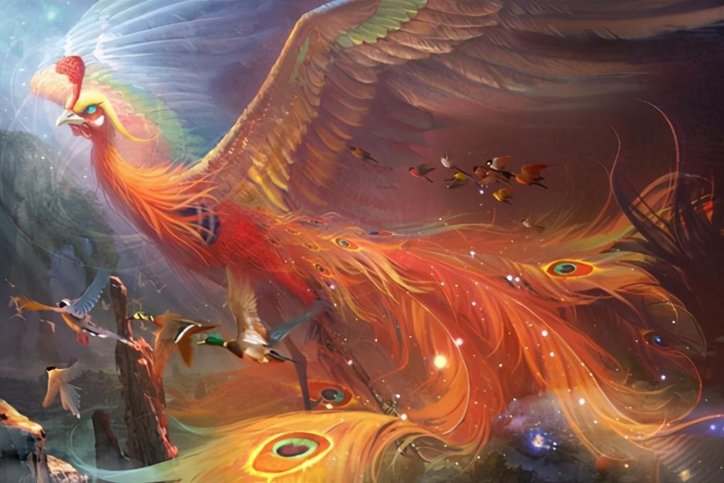 凤凰也叫凤皇,相传在古代是百鸟之王,其实凤凰并不是指的一只生物,而是雄性叫做凰,雌性叫做凤,总称为凤凰,它在古代一直代表着祥瑞,是吉祥和谐的象征,自古就是我国的文化的主要元素,在地位上凤凰与龙一样,都属于最顶级的瑞兽,可是关于凤凰的形象,却越往后越复杂,一开始凤凰在《山海经》中记载的仅仅是“有鸟焉,其状如鸡,五彩而文,名曰凤皇”,甚至还有食用的记载,还有《大荒西经》也记载到,“沃之野,凤鸟之卵是食,甘露是饮”,意思是,在一个叫做卧民国的地方,这个地方的人们以凤凰的卵为食,以甘露为饮料,直到宋代,凤髓也被称之为是八大奇珍美食之一,而后来凤凰的形象又被传承了,“麒前鹿后,蛇头鱼尾,龙文龟背,燕颌鸡啄”,成了很多鸟兽特征集合而成的一种神奇的生物。