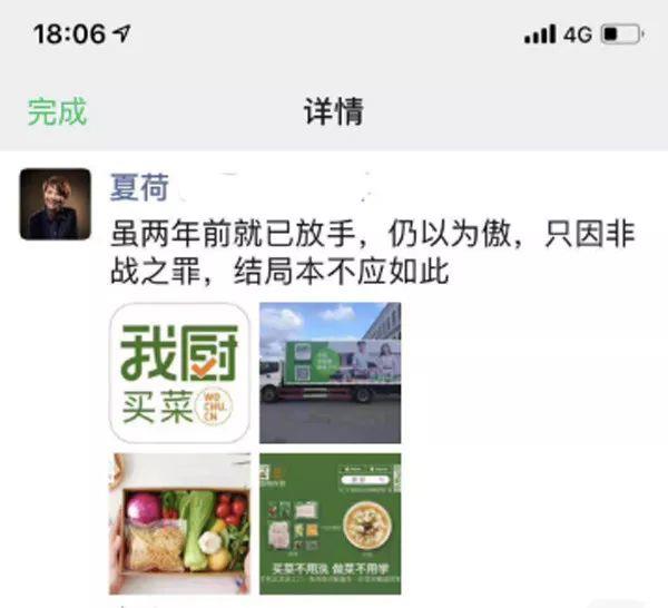 12月12日下午,净菜电商平台我厨的前COO夏荷在朋友圈写下:虽两年前就已放手,仍以为傲,只因非战之罪,结局本不应如此。