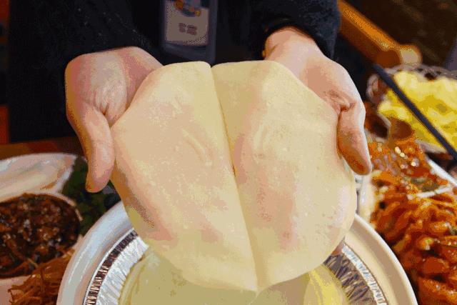 但是,春饼制作出来的成品一般个头都比较大,差不多是手握一个,然后慢慢吃,有点像煎饼果子的吃法。也就是说,北方人会把它当成一顿饭吃,或者是一顿饭中非常重要的组成部分。