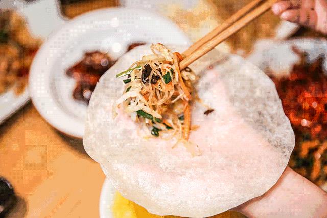 所谓春饼,又叫荷叶饼,是一种烫面薄饼。春饼的大小比较标准,通常多为巴掌大小,材料简单,豆芽、胡萝卜、茼蒿杆、木耳等都是受欢迎的馅料。
