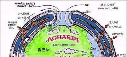 地球内部是空心的,藏传佛教传说中的“香巴拉”,又译为“香格里拉”,其意为“极乐园”,是佛教所说的神话世界,为时轮佛法的发源地;香巴拉不是一个虚构的世外桃源,香巴拉就在地心。
