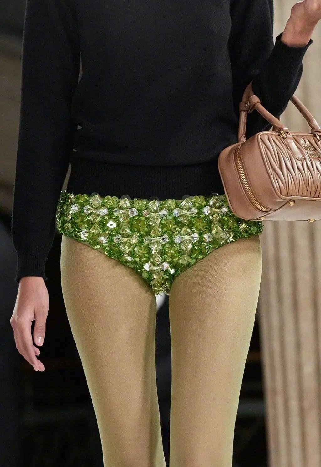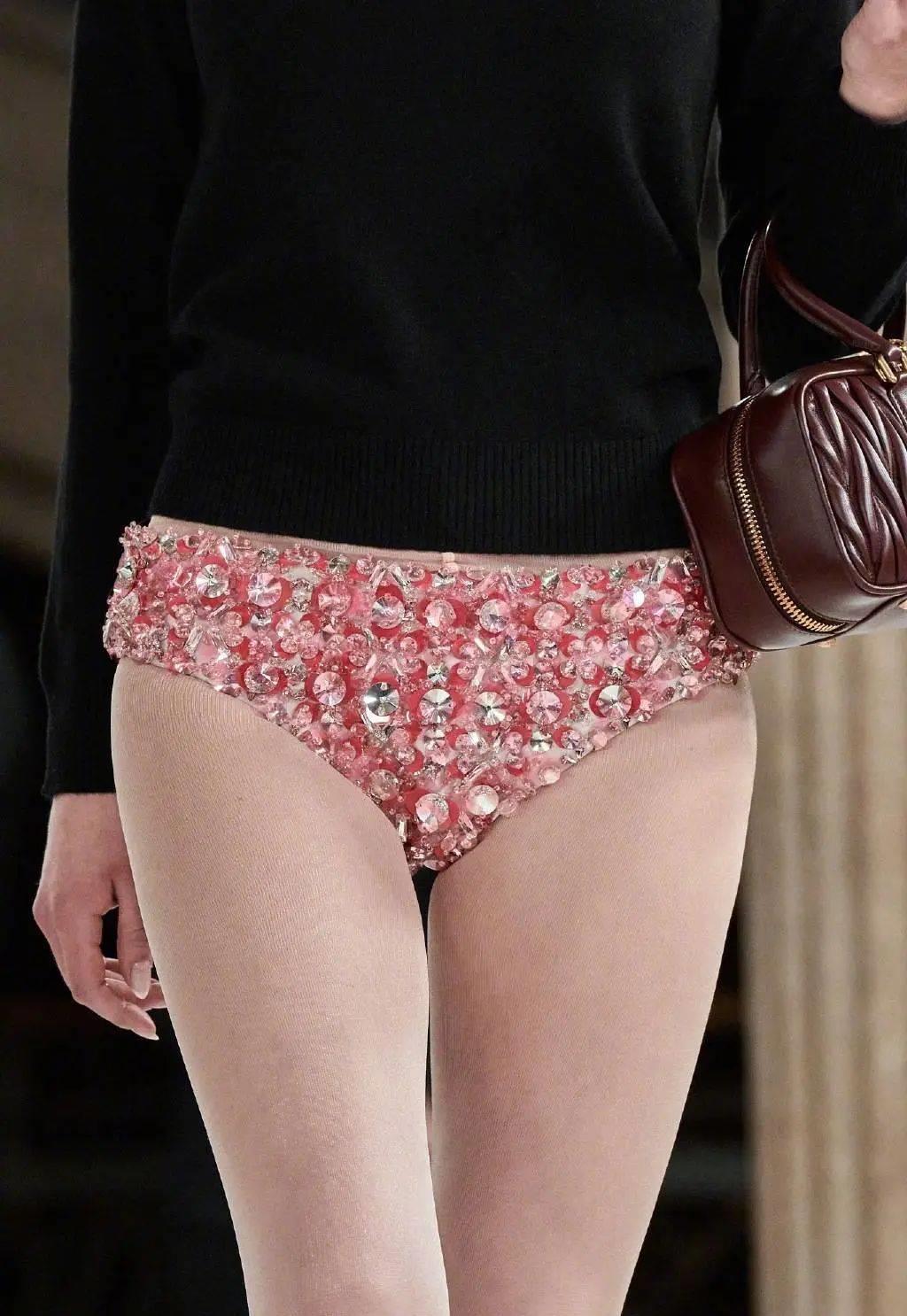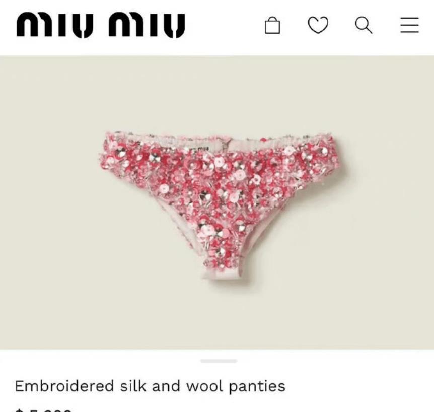 miumiu的一款三角内裤因价格超高而引发了网友的热议,这个内裤镶上假钻石,售价高达5600美元,折合人民币高达超过4万。即便如此,