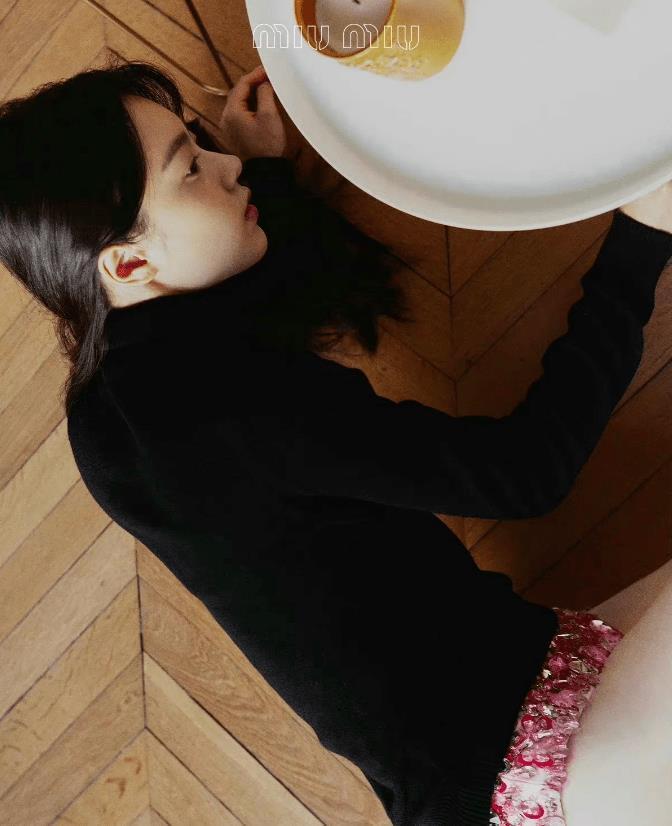 miumiu品牌大使赵今麦因为身穿一套2023秋季最新成衣系列而引发了热议。她的穿搭充满了奇异的搭配,上半身穿着纯黑长袖衫,下半身则是粉色钻石内裤。
