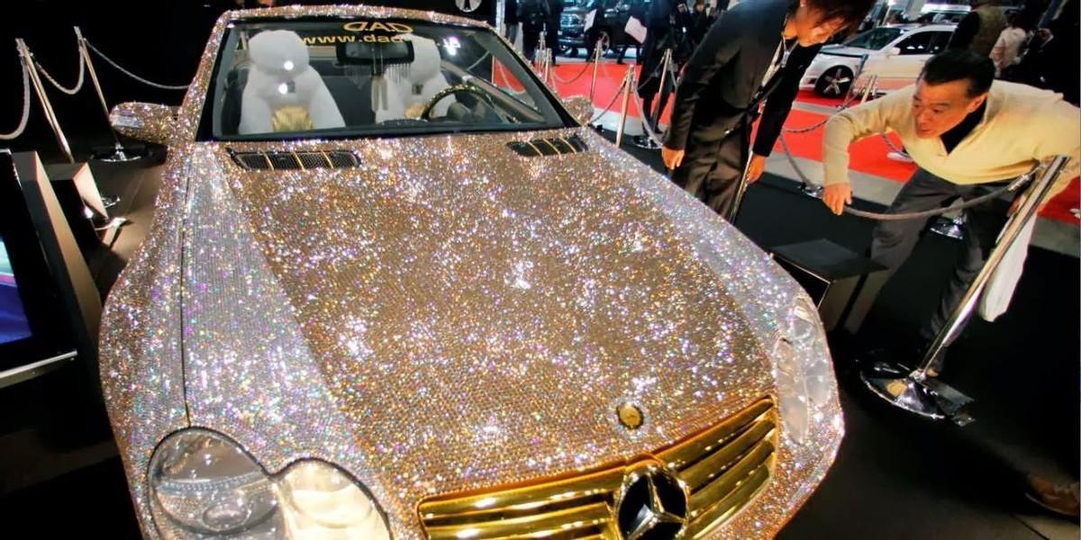 据说瓦利德曾经举办过豪车展,其中展出的一辆奔驰SL600镶满了30万颗钻石,摸一下就需要缴1000美元。