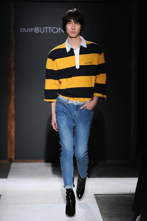 作为pushbutton的品牌创始人兼创意总监,朴承乾(park seung gun)此次亦亲临现场指导,尽力为中国粉丝们呈现一场最精彩的新装发布,他,“在设计2017春夏系列时,我的脑海中都是‘现成的艺术品’(ready-made)这个词,就像艺术大家马塞尔.杜尚曾经做过的一样,我希望把过往日常的时尚单品,经过pushbutton的方式重新诠释,呈现出时装兼具艺术品的一面。例如,在本季男装设计里,我就用到了中国的马褂作为灵感。”