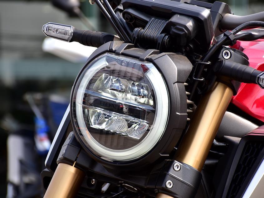 复古风十足的圆灯设计让CB650R变得更加耐看,同时大灯结构也与CB1000R十分相似;新款CB650R将大灯与转向灯光源均升级为LED,同时在大灯内部嵌入了环状LED日行灯,夜间辨识度极高。