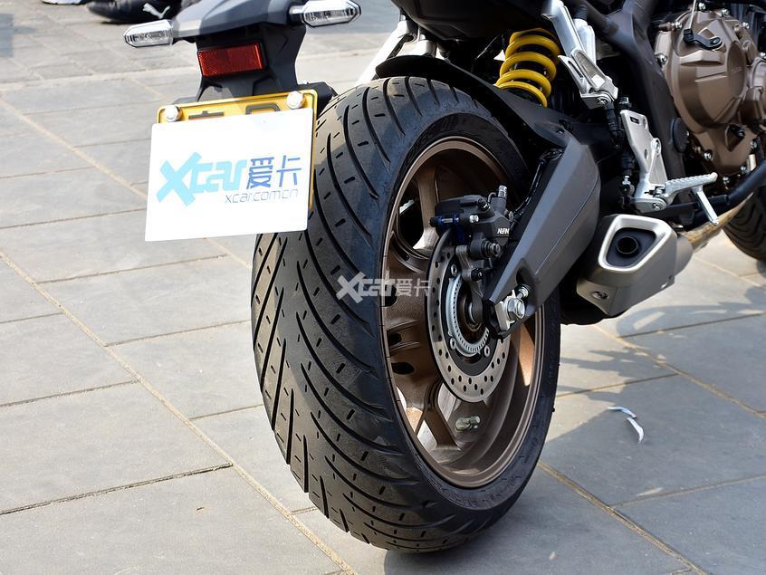 CB650R使用了两条由象牌提供的ROADTEC 01轮胎,相比老款象牌Z8和CB650F上的邓禄普轮胎更耐磨,同时湿地表现更佳;其轮胎规格为前120/70 R17,后180/55 R17。
