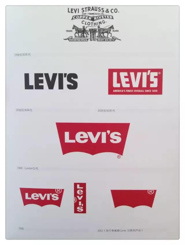LEVI'S是来自美国西部最闻名的名字之一。它也是世界第一条牛仔裤的发明人LeviStrauss(李维.史特劳斯)的名字。而LEVI'S原先的logo是两匹骏马拉着牛仔裤,是展示牛仔裤的质量,但是由于该logo太复杂,于是采用后来的红白设计,直到改为蝙蝠翼。