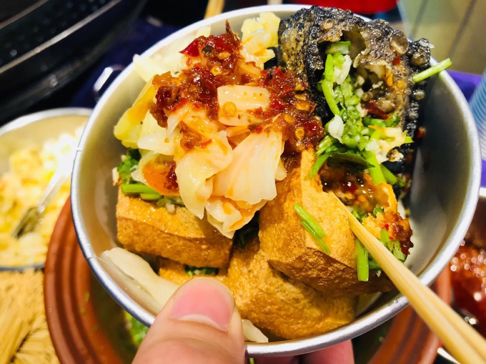 长沙的臭豆腐是一道以臭豆豉为主料的美食,口感鲜美,风味独特。再搭配上冬笋、榨菜、香菜、花生米等食材,味道层次丰富,是一道深受长沙人喜爱的美食。