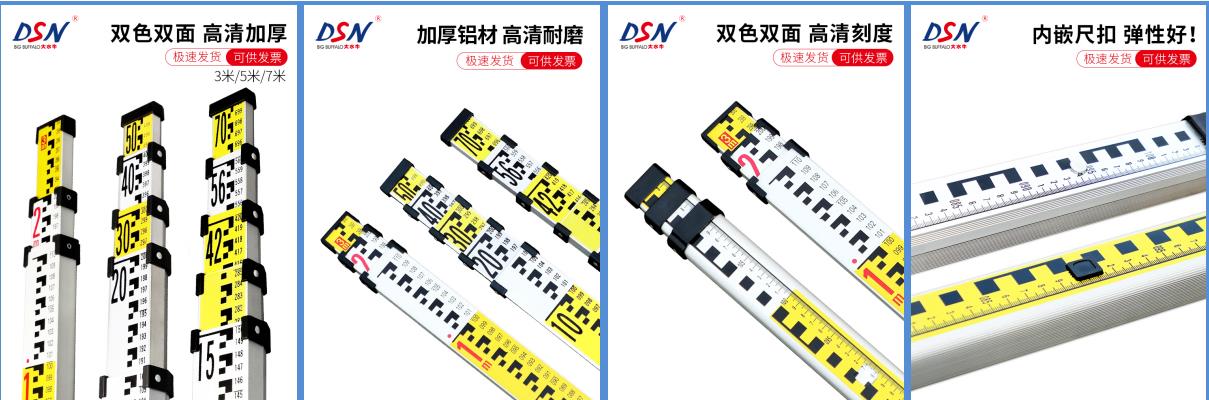 塔尺有3m、5m、7m多种,常用于等外水准测量及碎部测量等,多采用铝合金制造。
