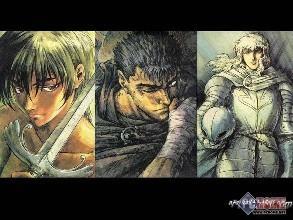 《剑风传奇》 又译为《烙印勇士》是三浦建太郎创作的漫画,讲述在那一夜,人们在睡梦中都梦到了同样的东西,有因瘟疫而走向毁灭的村庄,有被驱使着巨兽的军队所蹂躏的国家,有因地震而坍塌的都市,又被洪水所吞没的城市,有被黑烟遮蔽的太阳,和因饥荒而彷徨的人群,有母子的死尸和邻人的尸骸,这所有的一切,都意味着一件事,在那些黑夜中,人们被遗弃在笼罩世界的真正黑暗中,而在黑暗中他们亲眼目睹了撕裂无明的黑暗,降临在血染的大地之上,一只光芒万丈的鹰,直觉告诉他们,那正是他们所寻求的东西。