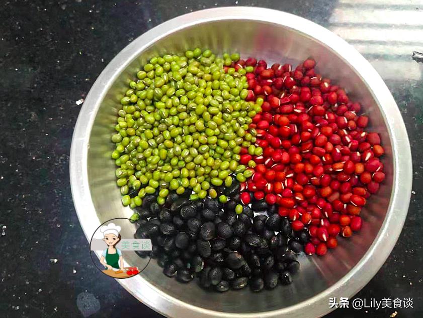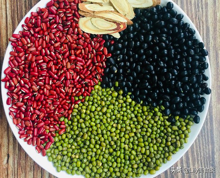 食材:黑豆、赤小豆(红豆)、绿豆。