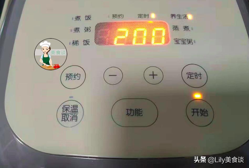 4、选择“养生粥”模式,一个程序走完成,三豆汤煮好,下入适量的红糖片煮融化即可。