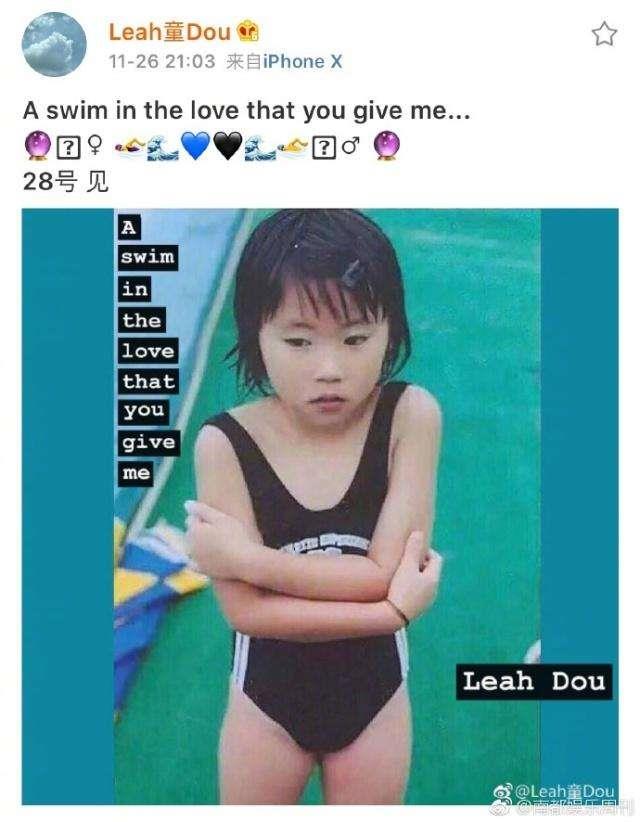 窦靖童晒童年泳装照,双手抱胸前呆萌可爱