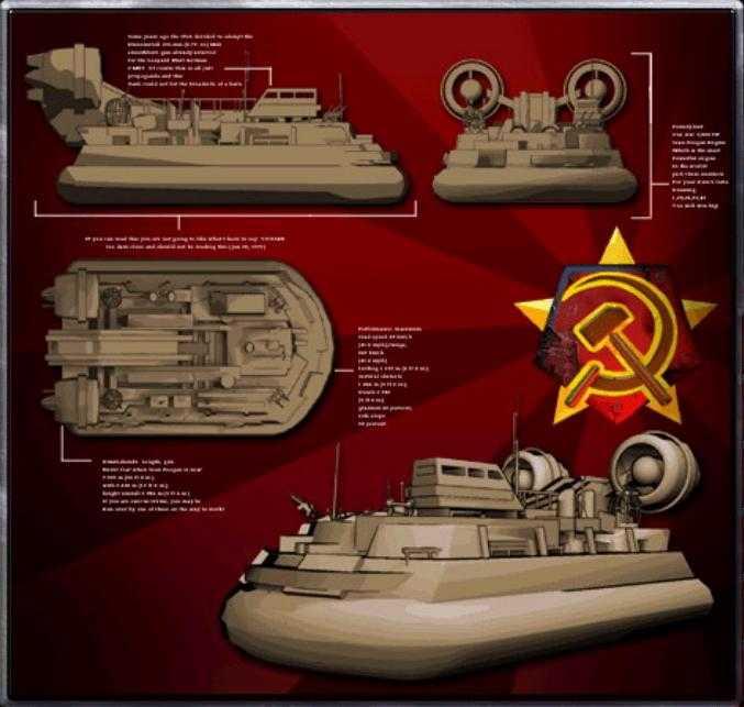 装甲运兵船可以装载12单位的军队,换算成为犀牛坦克可以装载4辆。美国的LCAC的排水量是87.02吨装载M1A2的话只能装1辆,但是游戏中的装甲运兵船装载的坦克是犀牛坦克(T80为原型)换算下来就是184吨,而且游戏中装甲运兵船可以抗住坦克的猛烈射击这一点是现在的装甲运兵船很难做到的。所以红警的装甲运兵船放在现在妥妥的黑科技。(这也是科技树点歪了的后果)