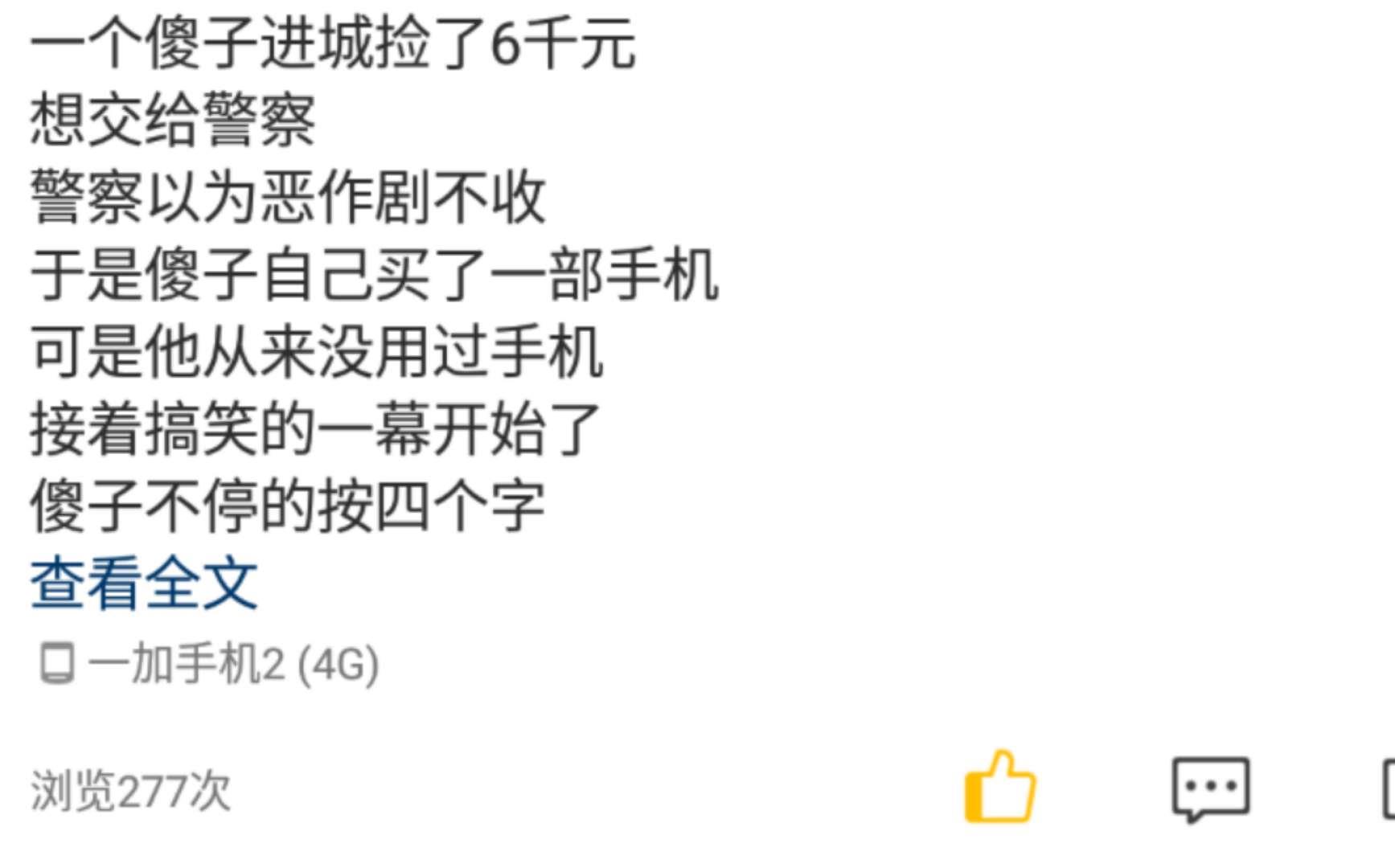 {uin:188,nick:查看全文,who:1}一个傻子进城捡了6千元