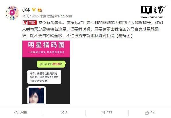 微软小冰上线明星猜码图 科学鉴别真爱粉