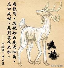 《山海经·中山经》:“敖岸之山……有兽焉,其状如白鹿而四角,名曰夫诸,见则其邑大水。”