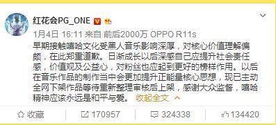 前日,pgone发微博道歉了,微博原文如下: