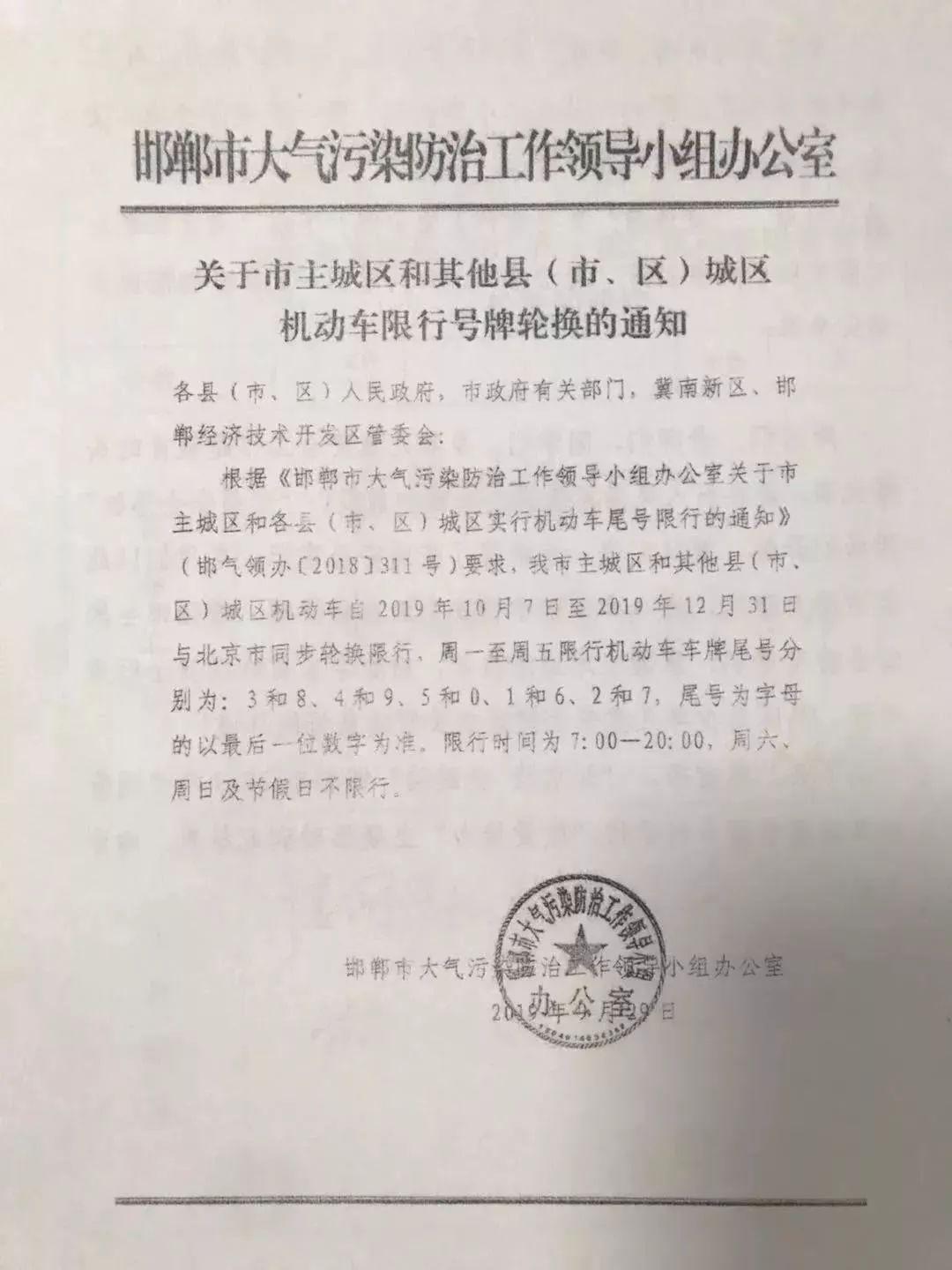 馆陶县机动车限行尾号轮换,10月8日起,限行!