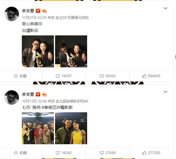 在今年播出的某大型明星恋爱节目中,余文乐与周冬雨的配对被网友称为“宇宙夫妇”,CP感满满,不少粉丝被圈粉,并表示在一起~在一起~而俩人微博频繁互动,让广大网友不断“吃狗粮”。