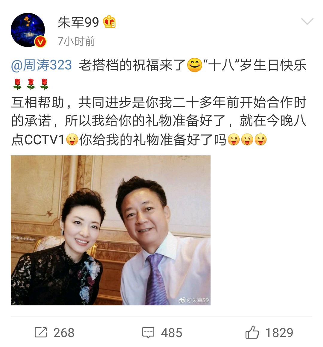 朱军祝福老搭档周涛“十八岁”生日快乐,一本正经老干部口吻!