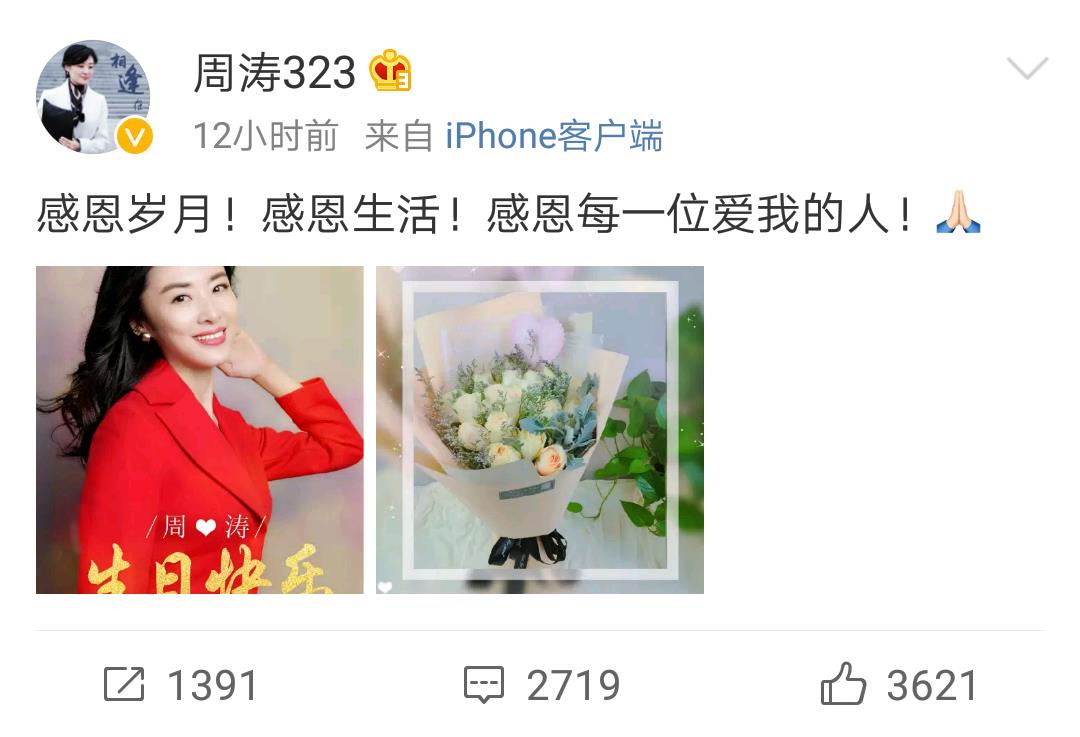 今天是周涛的生日,周涛自己在微博中,发博文说,感动岁月,感动生活,感动每一位爱她的人!
