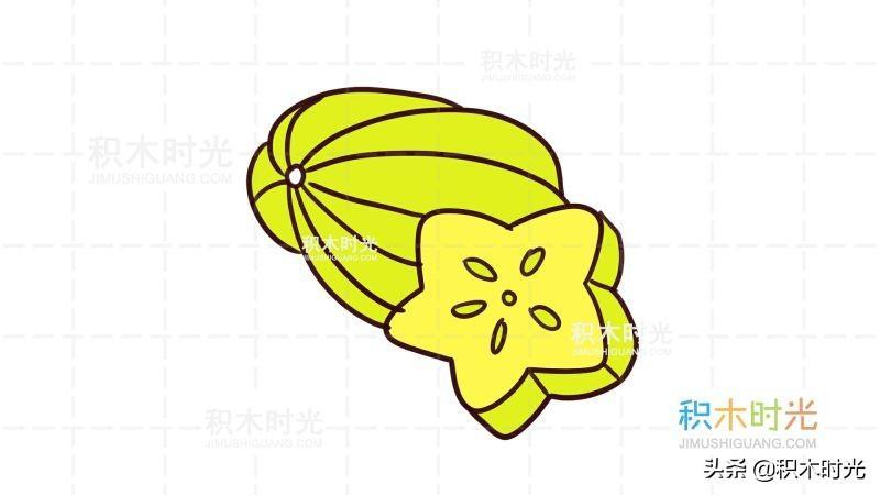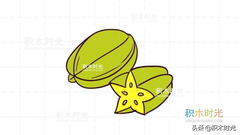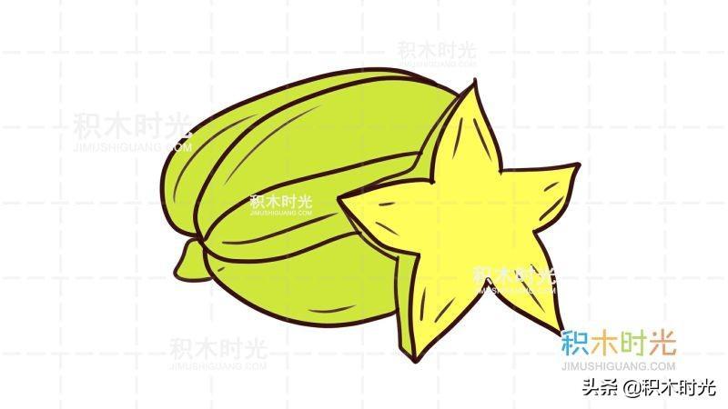 杨桃简笔画教程,画杨桃简笔画第1种画法,积木时光简笔画