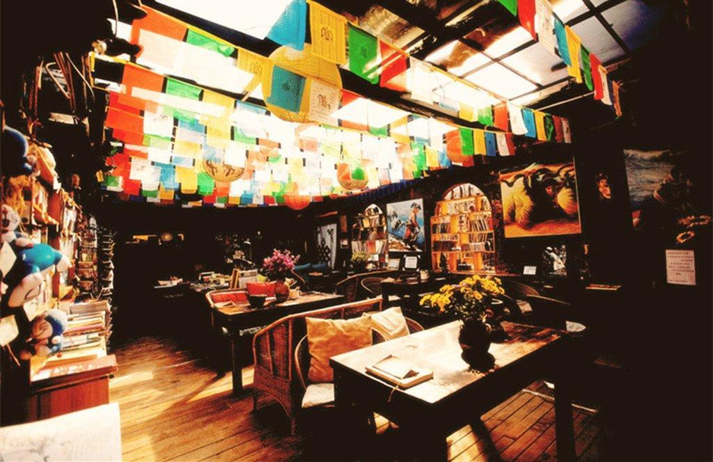 店内有一面墙放满了店主和驴友去西藏拍回来的明信片,是为了西藏的小学募捐的。