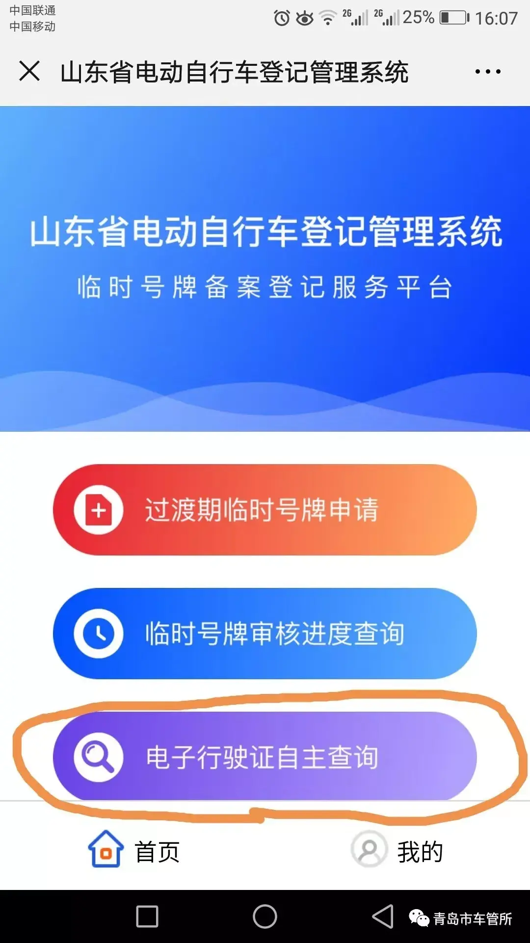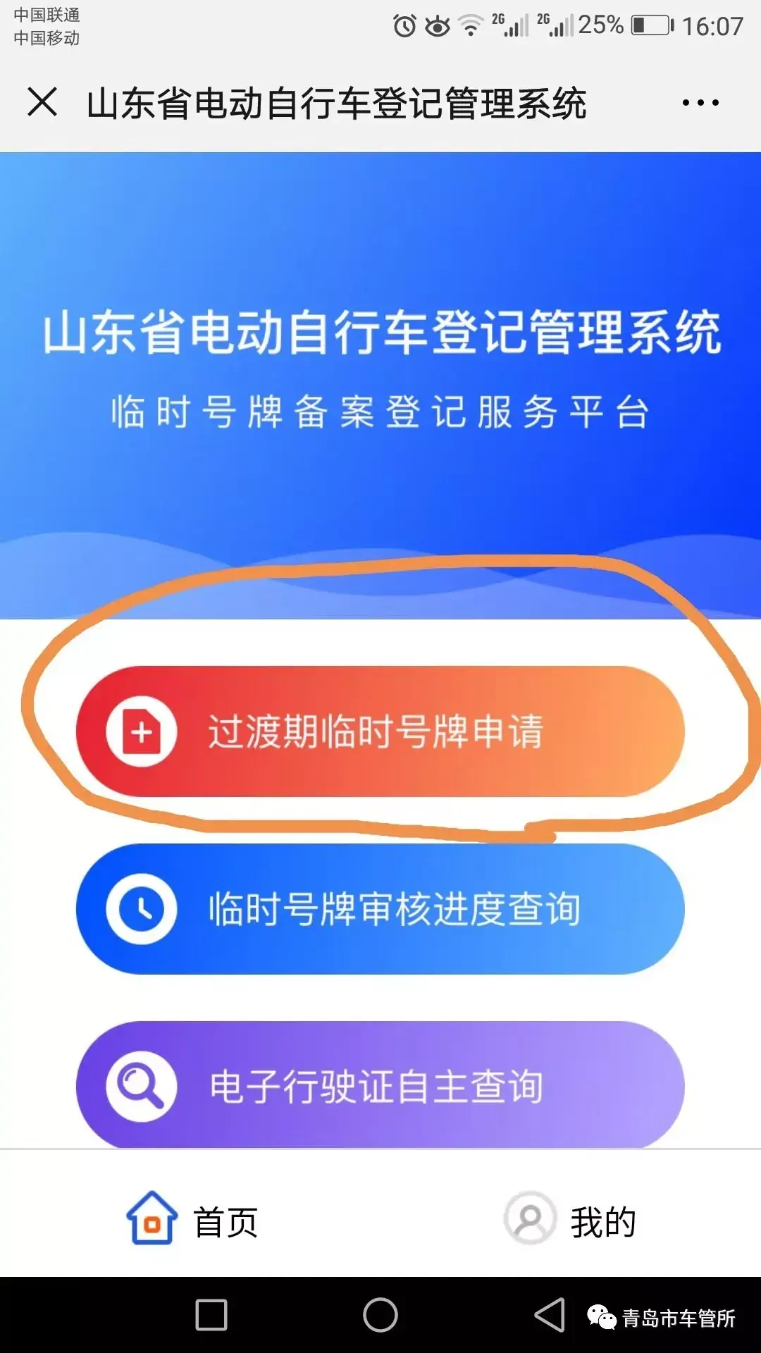 网上办理二:关注“青岛市车管所”微信公众号,网上自助申领电动自行车临时号牌,号牌领取方式可选择邮寄(邮费12元需自付)。网上申领电动自行车临时号牌,足不出户号牌邮寄到家哦!
