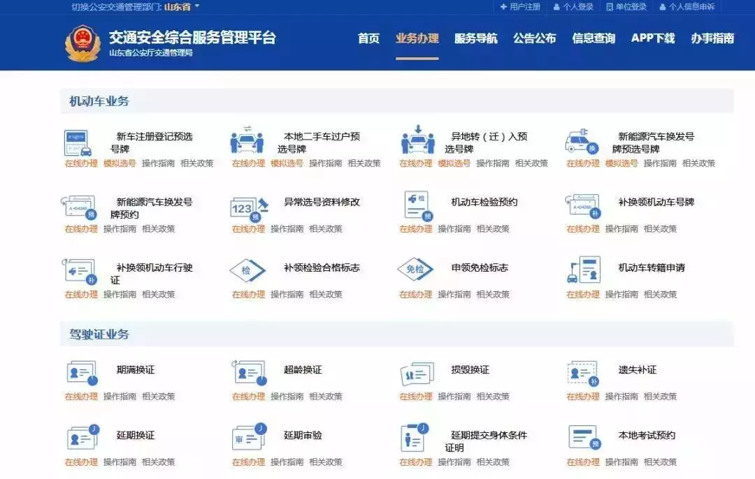 登录网址www.sd.122.gov.cn办理车驾管业务