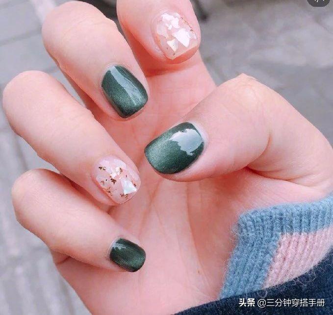 墨绿色的猫眼美甲算是最常见的一种,大概因为这也是大多数猫咪的眼睛颜色,自带高冷的距离感。墨绿色对于肤色没有太大的挑剔,就算是黄皮星人也能轻松驾驭。