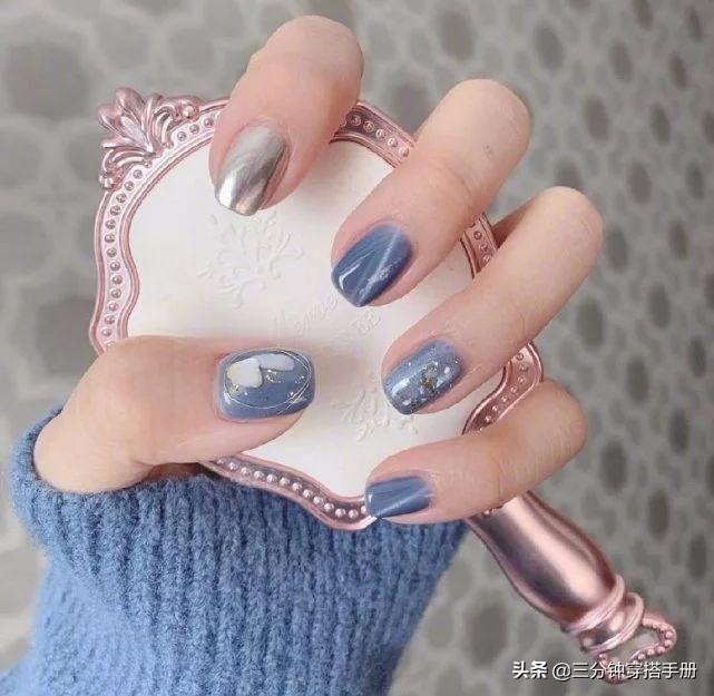 同样是深色系的美甲,星空蓝相对没有那么高冷,而是一种神秘美好的感觉。气质十足的配色,如果再加上一些金属亮点缀就更好了,适合喜欢浪漫的小女生。