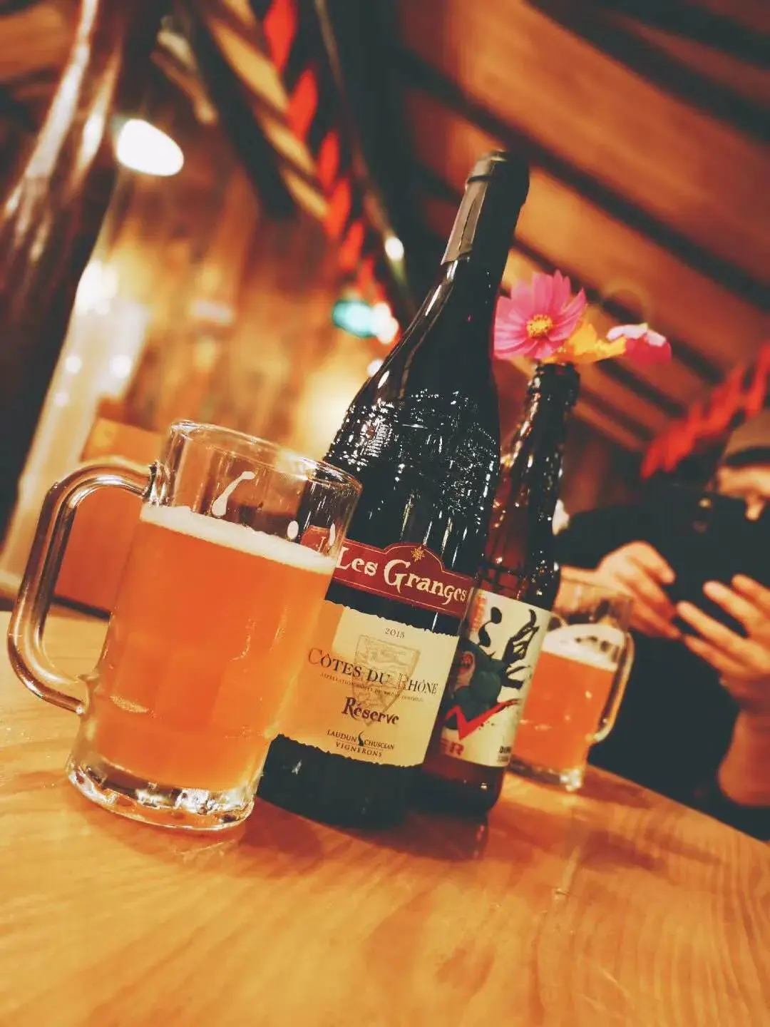 第二款为桂花蜂蜜比尔森,原料:酿造水、麦芽、干桂花、蜂蜜、酒花酵母。这款每升精酿啤酒约含500朵桂花和一勺蜂蜜。开盖后能闻到扑鼻的丹桂香,倒入酒杯呈明黄色,喝下去后满口桂花香及蜂蜜带来的丝柔滑爽,后段是从舌根处体会到的皮尔森麦芽香气。这是适合喜欢精细口感的好酒者,能很好体现中国风的啤酒。(品尝级)