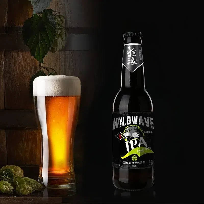 第三款为双料印度淡色艾尔,原料:酿造水、麦芽、酒花、酵母。这款DIPA:狂狼双料IPA是由几种进口啤酒花混合酿造出来的,柑橘和百香果的香气让人欲罢不能,70的苦度值是进阶版啤酒爱好人士的钟情。初入口时充满热带水果的清新,中段细腻的泡沫夹杂着满口的麦芽及甘苦,干净清爽,尾段未经过滤带来的酵母味直接让人觉得回味无穷需要再来一口才够爽。这是老饕们的必备口粮酒。(老饕级)