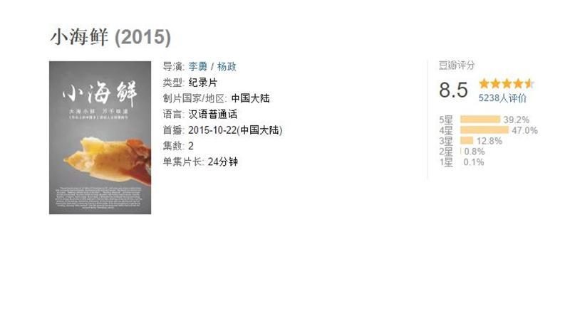 《小海鲜》由李勇执导,制作团队是《舌尖上的中国》的原班人马,这部纪录片只有短短的两集,讲述了8个感人至深的故事。在这部美食纪录片中不仅展示了小海鲜的做法,更通过美食,表达了家人团圆的重要性,让我们感受到了不一样的人文情怀。