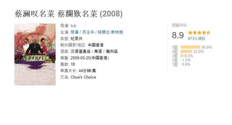 八、蔡澜叹名菜8.9分