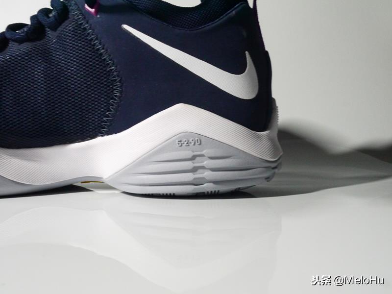 鞋底的颜色还是比较丰富的,标出了Zoom的位置,Zoom气垫感觉还是很贴地的。PG的标志嵌在了鞋底中间,鞋底的纹路为菱形,这些小小的菱形由横竖分块的线条组成,抓地力十分可观。