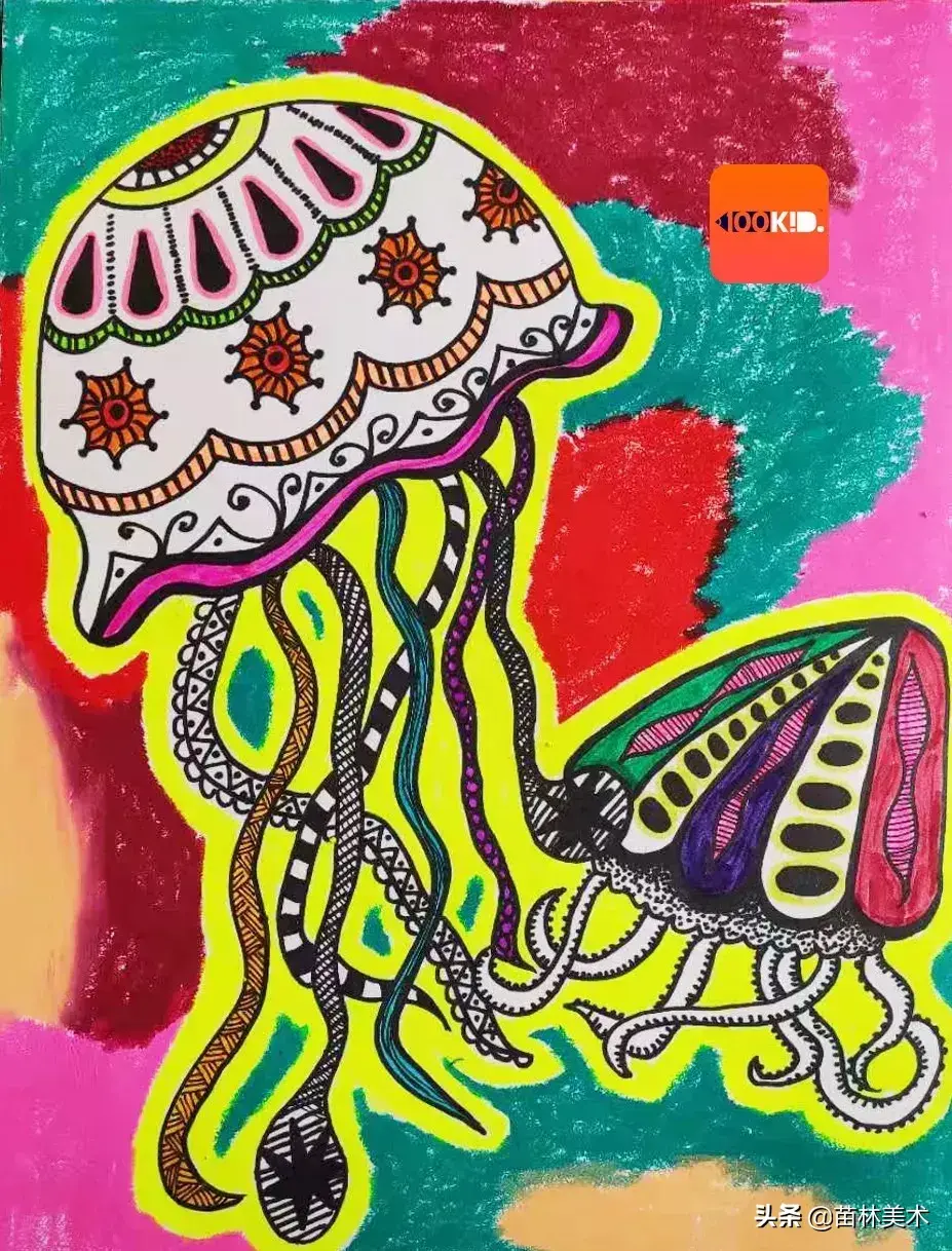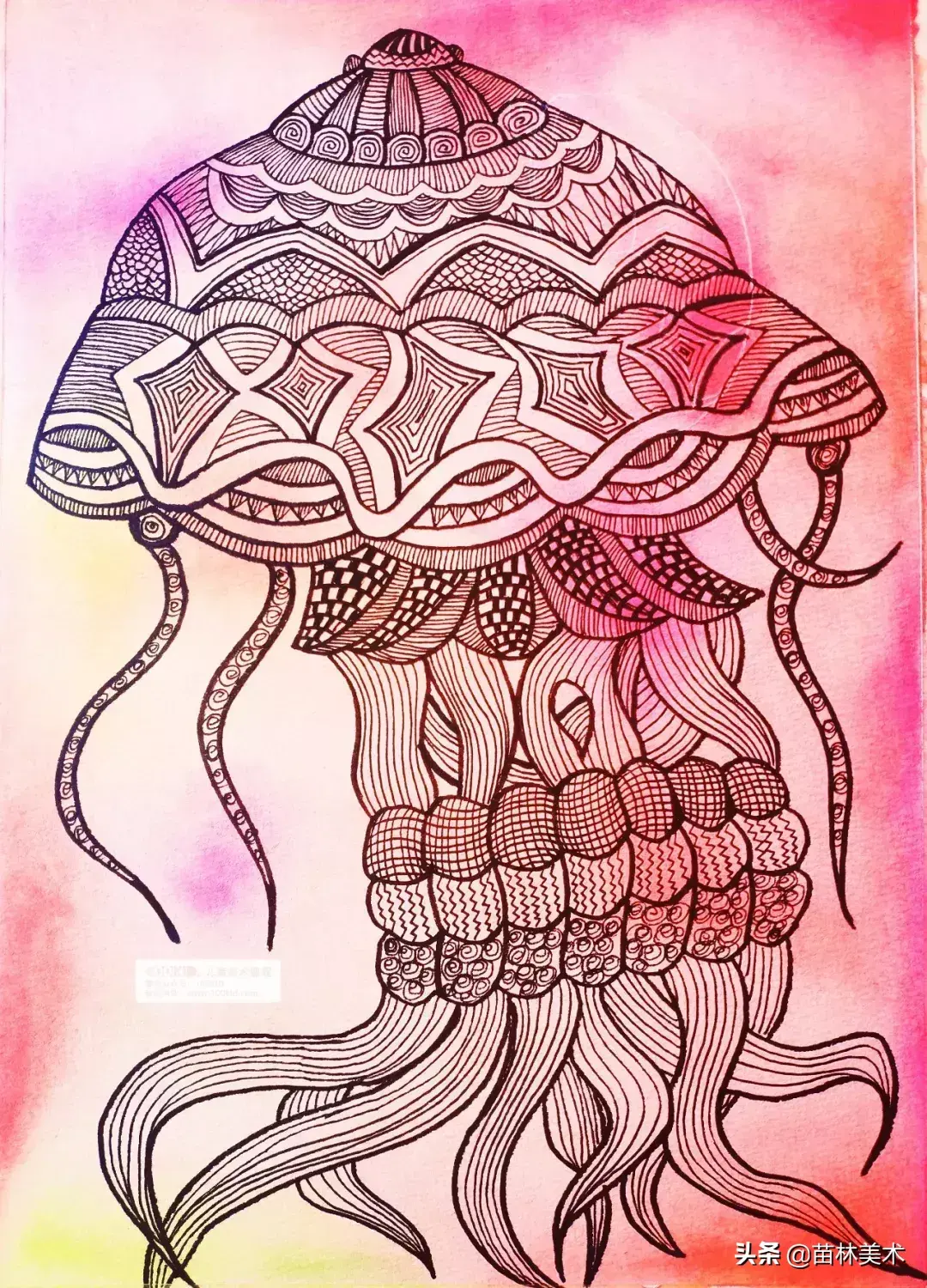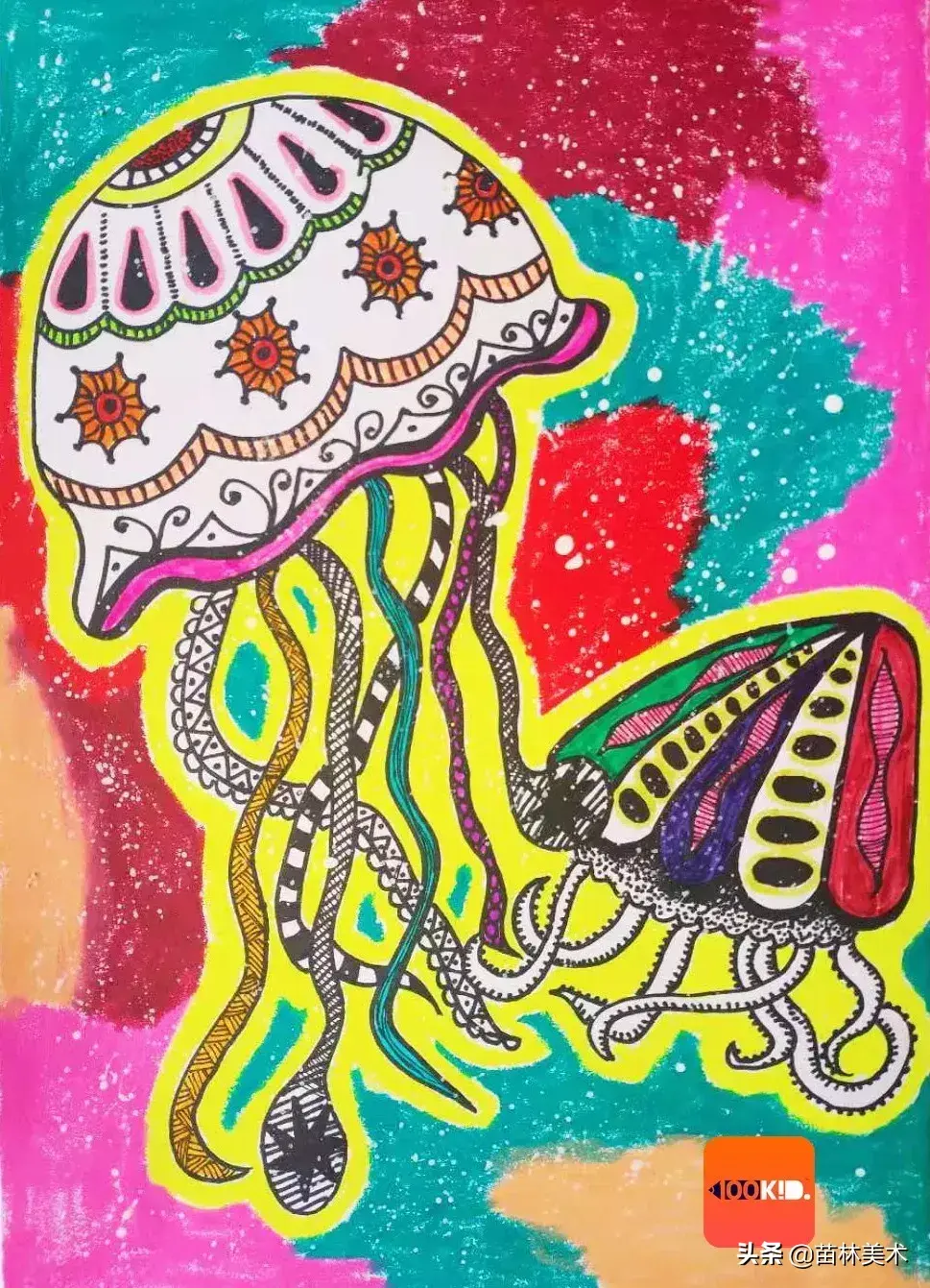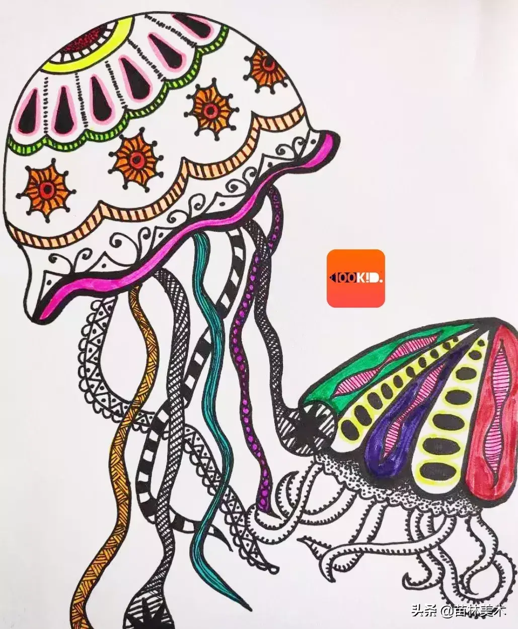 第八,一副简单的彩色线描水母画好了,你学会了吗?