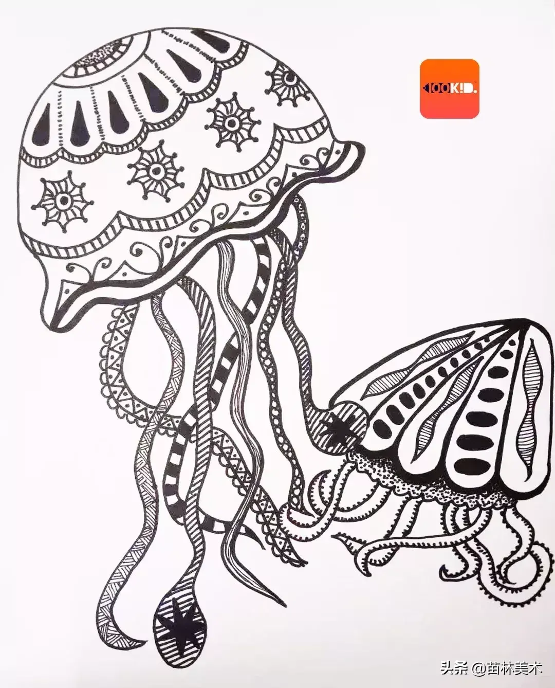 第二,使用勾线笔画出水母纹案图样,注意每个纹案不同点。