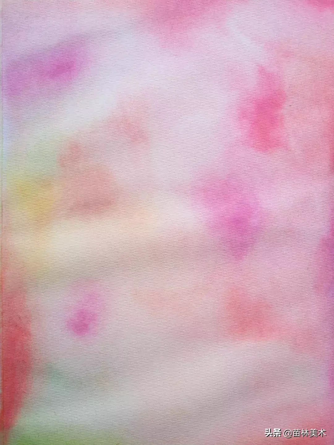 第一,在水彩纸上用水彩画出背景,注意颜色渐变(可以不同色系,本教程以暖色系为主)