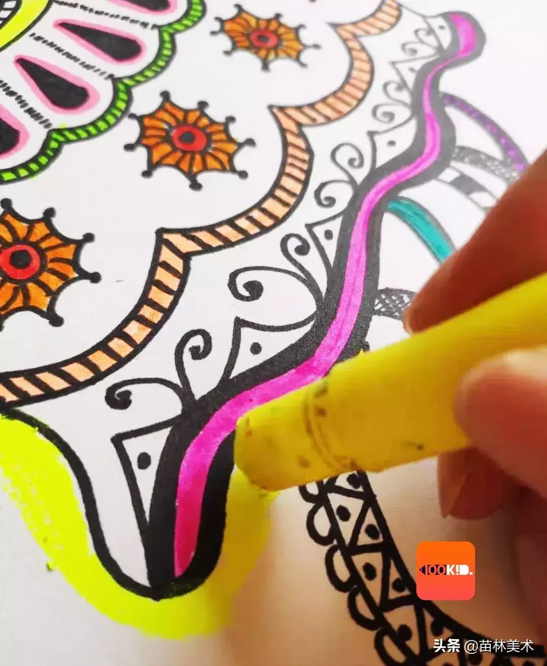 第六,用彩色的油画棒画出五彩缤纷背景世界