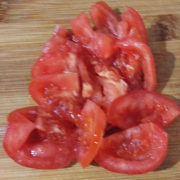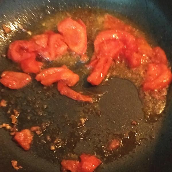 小火炒西红柿酱,放少许盐,加一点白开水,放一颗冰糖,2滴醋,熬制2分钟即可.