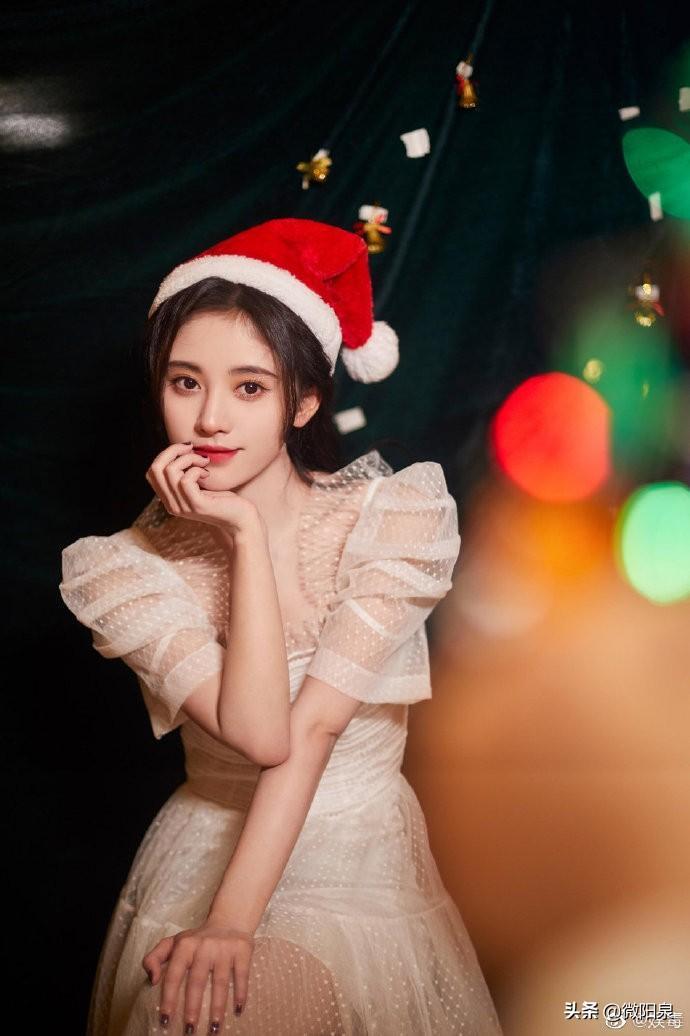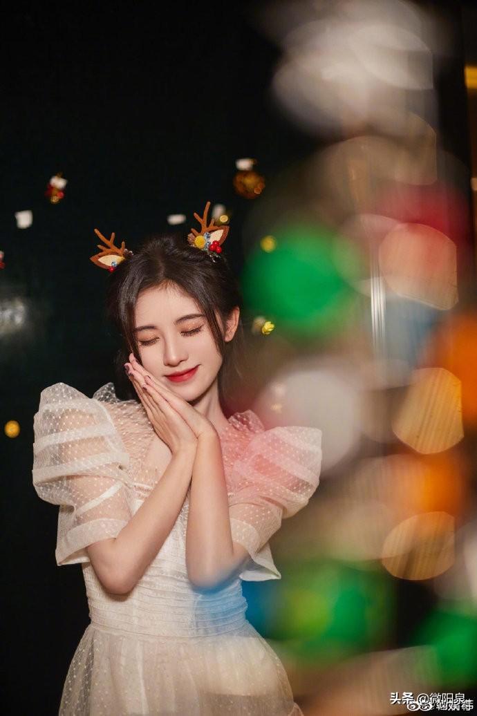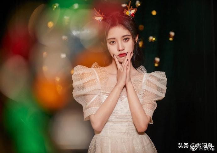 鞠婧祎白色蕾丝裙,可爱气质相结合,锁骨杀接好