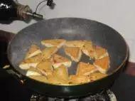 1.豆腐切三角块备用。
