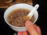 4.调一碗汁加蒜末,清水,生抽,蚝油,盐,糖搅拌均匀。